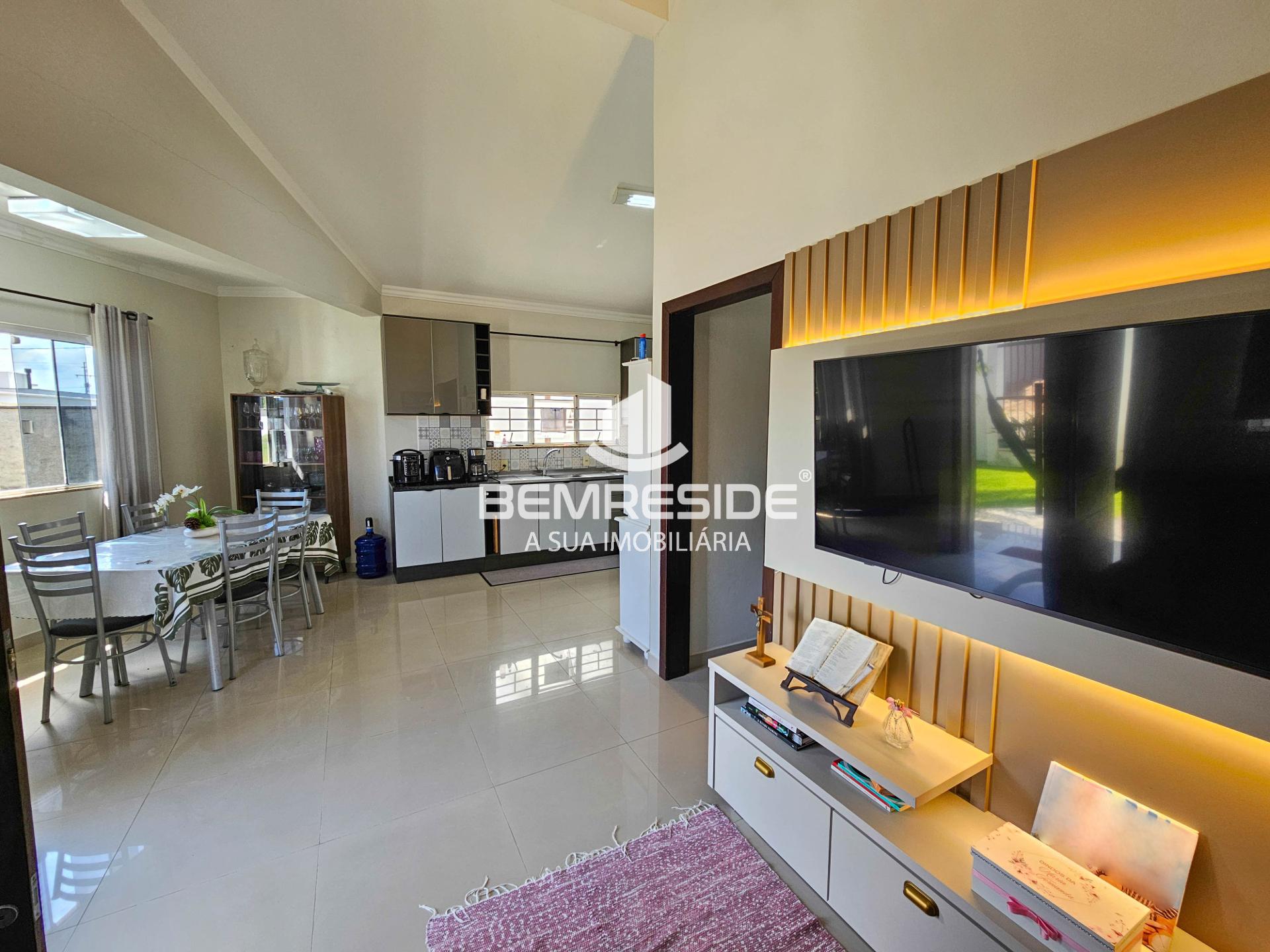 Imagine morar em uma casa que une conforto, qualidade e um excelente padrão de acabamento. Toda em laje, ela oferece mais segurança e durabilidade. A sala e a cozinha são conjugadas, com ambiente moderno, amplo e extremamente arejado aquele espaço perfeito para reunir a família e receber amigos. Os quartos são bem distribuídos, com corredor que garante mais privacidade no dia a dia. E para completar, o imóvel conta com muro, portão eletrônico e pergolado para proteger seus automóveis.